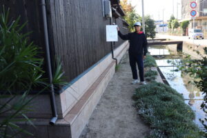 建物の損傷個所や傾きの有無などの調査を行いました。