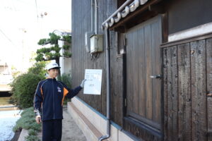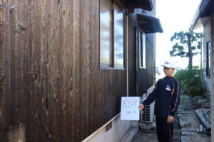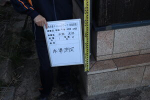 建物の損傷個所や傾きの有無などの調査を行いました。